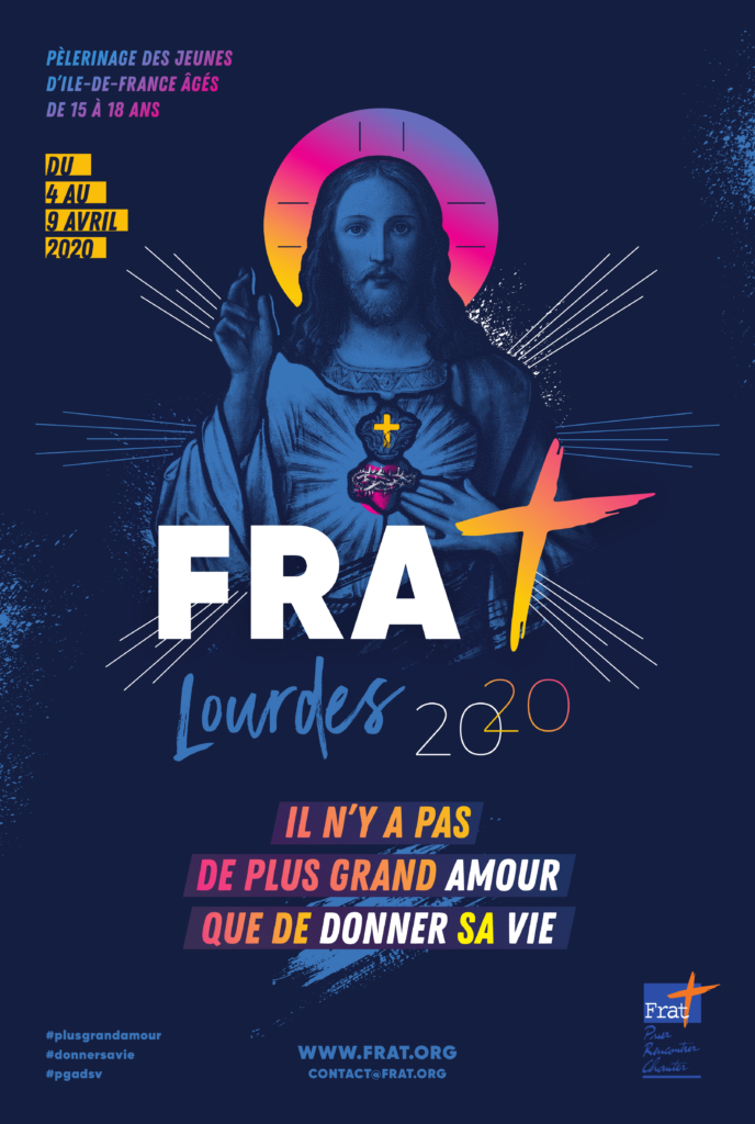 Dans ce monde où le chemin du bonheur est souvent vendu comme une accumulation de satisfaction de ses désirs, du gain de l’argent et de la réussite à tout prix; où les méthodes proposées conduisent à l’exploitation désordonnée des ressources et parfois des hommes, nous te proposons une révolution de l’Amour lors du Frat à Lourdes du 5 au 8 avril 2020.